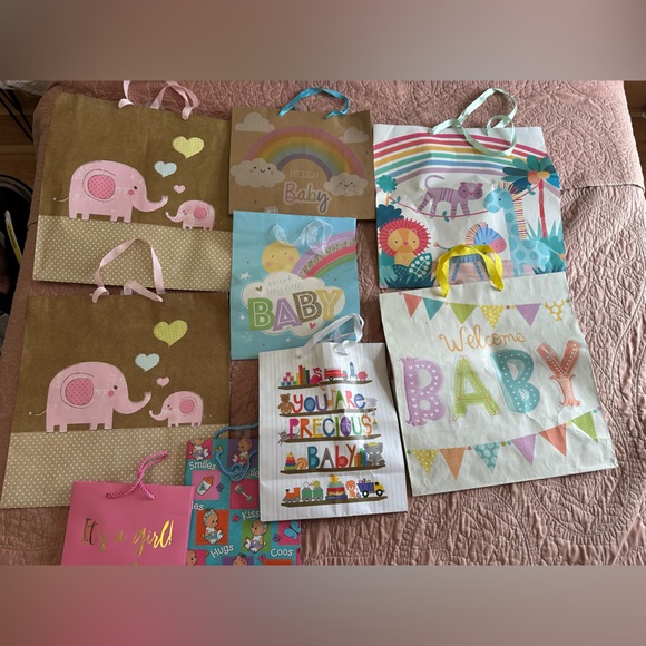 Assorted gift bags for different occasions. Baby showers, birthdays, Christmas. All in great gently used condition or like new.
