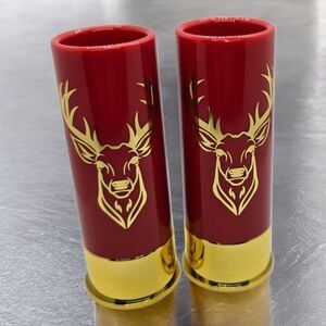 - 2 Red Shot Glasses with Gold Foil Deer Head