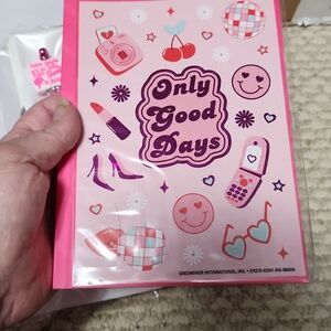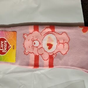 Charming Care Bears pink socks with pink flower hair clips. Includes a colorful butterfly bracelet, a journal, 2 pens, mirror key chain, strawberry shortcake lip balm, and thank you gift surpise.