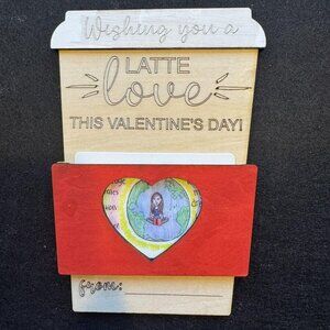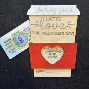 This handmade "Latte" gift card holder is made by me, on my laser cutter and then hand painted. This is meant to hold a coffee shop gift card for the teacher, assistant, employee or anyone you want to show thanks to on Valentine's Day.