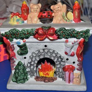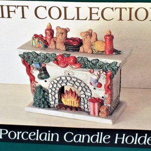Gift Collection Christmas Fireplace Porcelain Candle Holder - in excellent condition - no chips or cracks - smoke free home