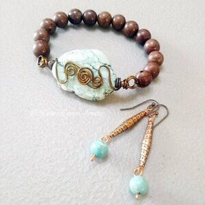 Gift Set: Beaded Bracelet & Earrings ~ Copper & Turquoise Howlite - Southwestern