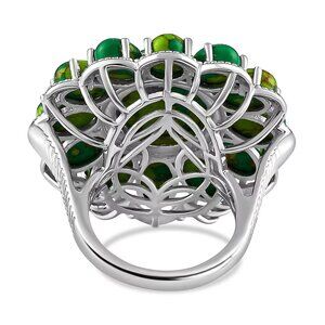 Lovely jewelry set includes two (2) items: Genuine Mojave Green Turquoise Gemstone Floral Ring, Size 9 and perfectly matching Mojave Green Turquoise Gemstone earrings with sparkling Peridot accent.
