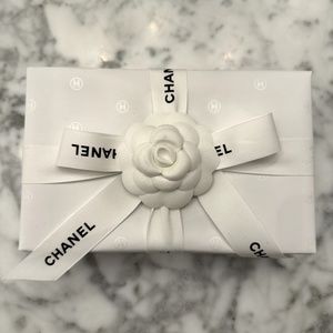 The box is gift wrapped with Chanel wrapping and camellia flower.