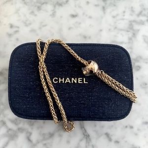Gift Wrapped Chanel Holiday 2023 Beauty Cosmetic Bag Blue Navy