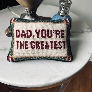 Small decorative pillow commemorating Dad. Green, Ivory and burgundy. Back is green velvet.