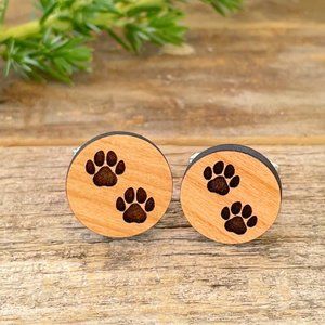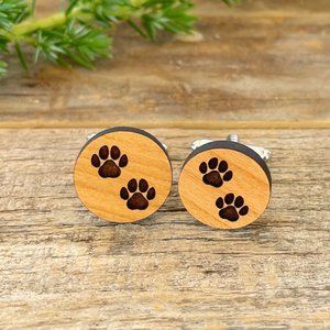 These beautifully engraved cherry wood cufflinks with set of paw prints are the perfect gift for any seasoned or new Dog Dad.