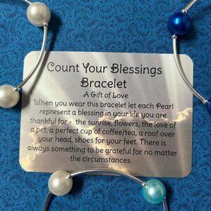 Gift of Love Blessing Bracelet Blue/pearl stretchy scripture card Small 6"-6.5"