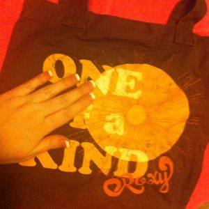 Velcro closure. Would hold several books or make a good beach bag. Light canvas material. Free gift with purchase of 3 or more items. :)