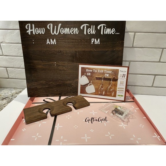 GiftAGirl Funny Wine Gifts for Women/How Women Tell Time Open box. Wine Glassed and Coffee Cups not included. Box a little worn