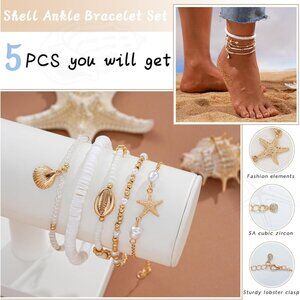Features: This set includes five adorable ankle bracelets with a bohemian flair, each featuring shells and starfish accents perfect for ocean lovers. Fully adjustable lengths ranging from 8.66 inches up to 13.38 inches, ensuring a comfy, secure fit for all. Made with hypoallergenic zinc, nickel-free, durable, and ideal for wearing on summer adventures or festivals.