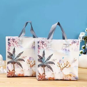 5pcs Coconut Fawn Pattern Plastic Tote Bags - Perfect for Shopping, Holidays, Birthdays, Room Decor, Christmas Gifts & More!