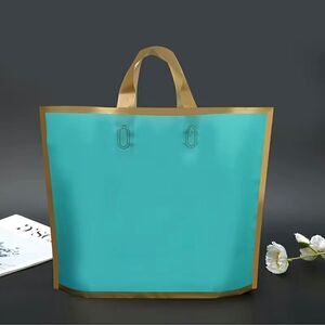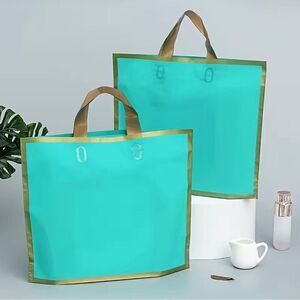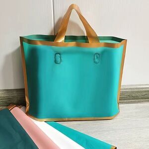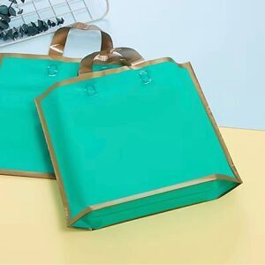 5pcs Gold Trim Light Green PVC Satchel Gift Bag, Holiday Gift Bag, Christmas Decor Supplies 11.8"x9.8"