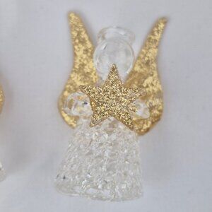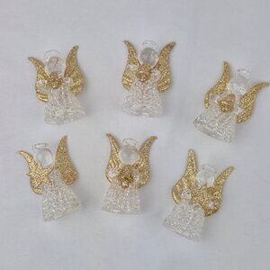 Giftco Clear Glass Angel Ornaments with Golden Glittery Wings Lot of 6
