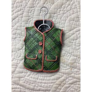 Giftcraft Green Plaid Mini Backpack & Vest Christmas Tree Ornament Set *NWT