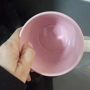 White mug with pink interior and inspirational text. Perfect for motivation. Great condition