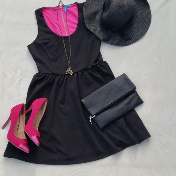Little Black Dress made by L'Amour Nanette Lepore. The dress is very simple with a skater dress style. It's so cute. Add some accessories and dress this girl up! There is a zipper in the back that matches the color of the inside neon pink!