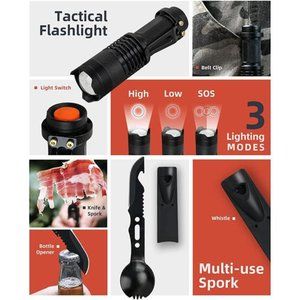 🧿【VEITORLD 11 IN 1 SURVIVAL KIT】Survival bracelets, wire saw, water bottle clip, emergency blanket, flint stone, scraper, flashlight, saber card, survival pen, multi-use spoon fork, fishing tools and box. For the same type of products, we have made larger and stronger fall-resistant materials. waterproof case with 4 closure clips. This kit can go almost anywhere and get lots of usage out of this unique and practical survival tool. Versatile, compact and useful for so many activities.