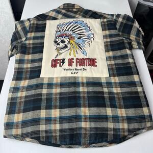 Gifts of Fortune Tomahawk Quilted Plaid Flannel Jacket Long Sleeve Button Up L