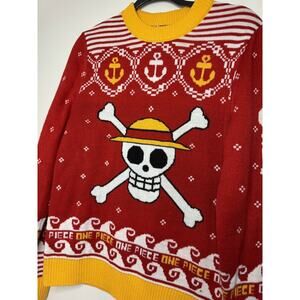 Gifury One Piece Luffy Skull Red Pullover Sweater Size Small Pirate Holiday