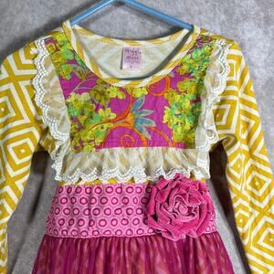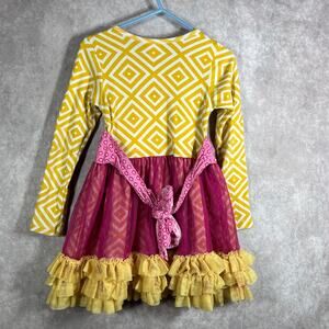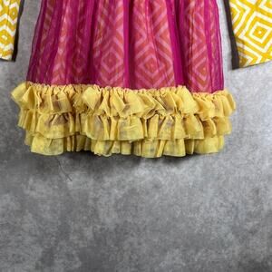 Giggle Moon Dress Girls 4 Multicolor Ruffle Trim Long Sleeves Casual Tulle Bow