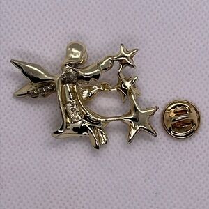 Gigi Giusti Smooth and Matte Gold Tone Angel Brooch Pin with Glitter Stars