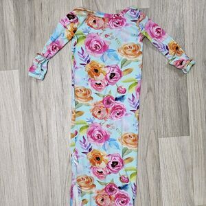 Gigi & Max Blue Floral Newborn Gown Colorful Knotted Bamboo