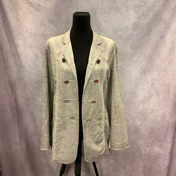 Very Versatile Blazer can be worn with collar up or down as pictured. The lapel can also be worn as shown or worn flat. Sleeves can also be rolled up.