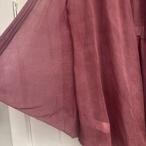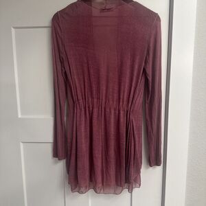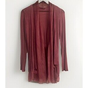 Gorgeous pink layered open cardigan with sheer panel. Different length layers gives it an ethereal, one of a kind look. Designer quality, made in Italy. Pinkish heathered burgundy colour.