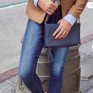 This slim, yet roomy convertible clutch can be worn 3 ways: a clutch, a crossbody bag, a shoulder bag or used as a Macbook holder. This new style, made of embossed python leather will quickly become your go-to accessory.