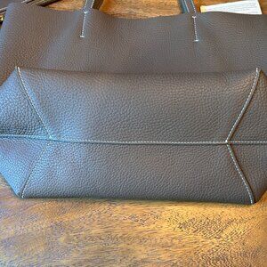 Crafted of soft, supple leather, this spacious shopper features a generous interior for work-to-weekend versatility. Contrasting stitch detail with matching detachable unlined zipper pouch.