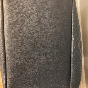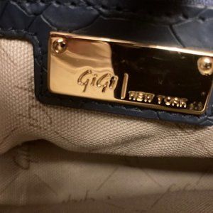 GiGi New York. Teddie tote Navy blue embossed python leather interior zip divider pocket full interior pocket and magnetic closure and metal feet