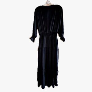 Gigi Parker Washed Satin Maxi Peasant Dress Black Size S
