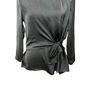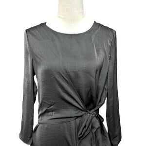 Gigi Parker Wrap Front Blouse 3/4 Sleeve Length Satin Fabric Black W Small NWT