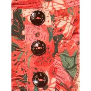 Adorable Gigi and Max long sleeve henley top in size 2T. Made from 95% bamboo viscose and 5% spandex, this top is buttery soft, stretchy, and perfect for sensitive skin. Features a vibrant coral base with an all-over floral print in pink, cream, green, and red tones. The front has a ruffled placket with three dark buttons engraved with “Gigi & Max.” Designed for comfort and everyday wear, this top is lightweight, breathable, and ideal for layering. Machine washable for easy care. Preowned but in-good condition with no stains, holes. SEE ALL PHOTOS THEY ARE PART OR DESCRIPTION