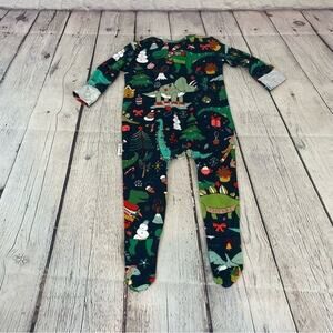 Item Specifics: Gigi and Max Holiday Dinosaur Bamboo Romper. Romper has zipper closure. Romper has fold over hands and feet.
