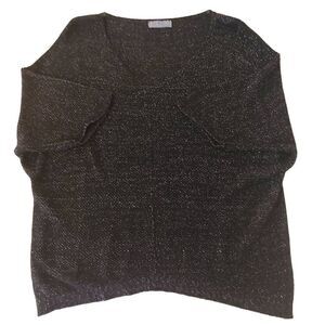 Easy casual black pull-over sweater. Features threads of silver to add sparkle. Take your basic black up a notch!