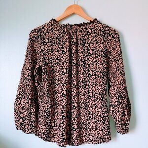 Gigio brand. Brown spotted design boho hippy style long sleeve shirt. V-neck with tassels on the sides. Tassels are in excellent condition with no damage at the bottom. No stains nor holes. No fading nor damage. Excellent condition. Medium size.