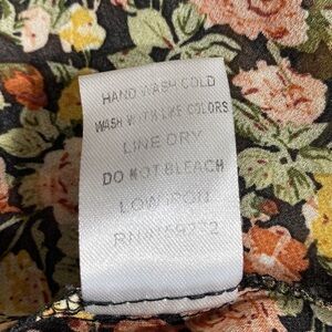 GiGiO Floral Boutique Blouse. The tag says it’s a Small but it fits like a Large or maybe even XL. It has a very Generous fit. Ruffle detail at the top of the sleeves. Cute top