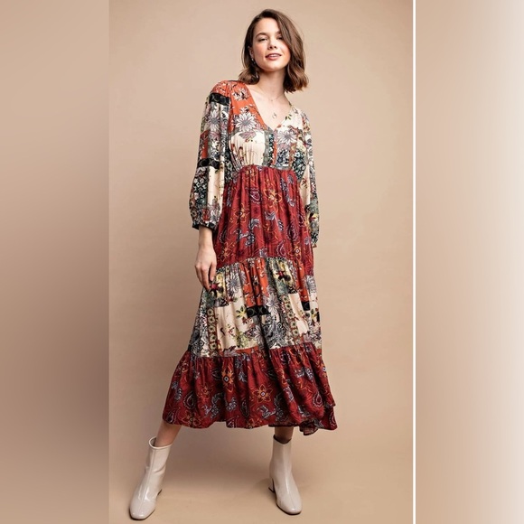 🌺 Gigio Marsala Floral Midi Dress‼️FINAL SALE