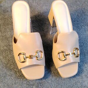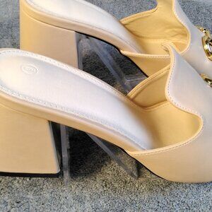 Gihubafuil Womens Block Heel Mules Khaki Gold Chain Slip-On Sandals Size 9