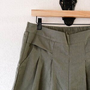 Gihuo Green Linen Blend Culottes Pants Size XL Wide Leg Palazzo Pockets