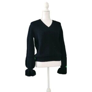 Gil' B Midweight Knitted V Neck Bell Sleeve Sweater Sz M