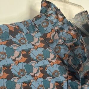 Elevate your wardrobe with this stylish floral button down shirt. Featuring a charming blue and brown pattern, this top is perfect for any occasion. Enjoy the comfort and elegance it brings to your outfit.