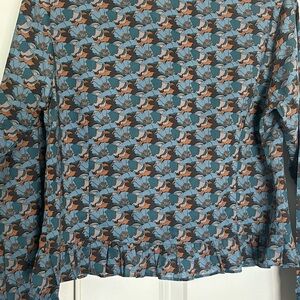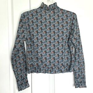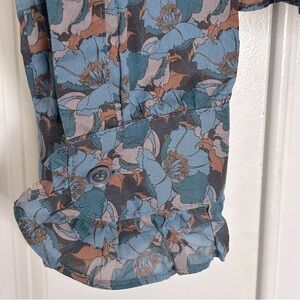 Gilber Gilmore Nicki Ruffle Cropped Cotton Button Down Blouse VTG Floral Print
