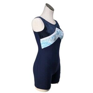 Navy and sky blue sleeveless tank unitard biketard leotard women's size XS (Y/J), NWT