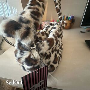 The Gilda Paris shoulder bag features faux fur in a bold leopard print. This Y2K-inspired bag has a spacious interior and a magnetic button closure. New with tags.