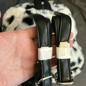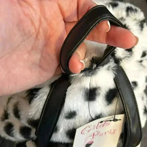 Gilda Paris backpack mini, super soft white with black dots front zipper and zipper inside.