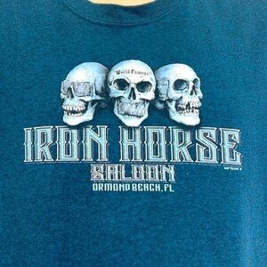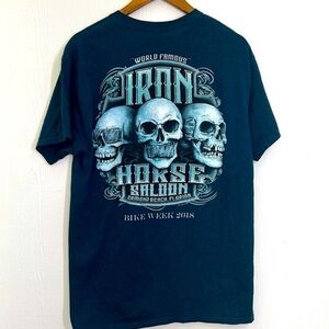 Gildan - 2018 Iron Horse See , Speak , Hear No Evil Skulls Iron Horse Saloon Ormond Beach Florida Short Sleeve T Shirt Size Large