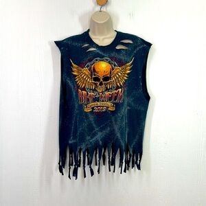 Gildan - 78th 2019 Skull Distressed Fringe Sleeveless Bike Week Daytona Fl Large